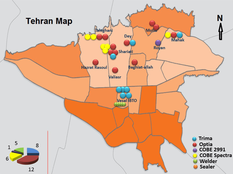 بيمارستان بقيه الله، بيمارستان دي، بيمارستان حضرت رسول، مرکز انتقال خون وصال، بيمارستان محک، بيمارستان کودکان مفيد، مرکز رويان، بيمارستان شريعتي، بيمارستان وليعصر، بيمارستان طالقاني